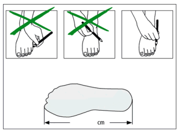 Stellen Sie den Fuß Ihres Kindes auf ein Blatt Papier, markieren Sie die Länge vom Hacken bis zum längsten Zeh und messen Sie den Abstand in cm. Vergleichen Sie das Maß mit der Tabelle – bitte keine zusätzlichen Millimeter hinzurechnen. Bauer & CCM Tabellen berücksichtigen bereits den nötigen Spielraum.